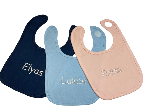 Mit der Personalisierungsoption können Sie den Namen Ihres Babys, ein besonderes Datum oder einen persönlichen Spruch auf dem Lätzchen sticken lassen, um es zu einem einzigartigen Geschenk oder Erinnerungsstück zu machen.