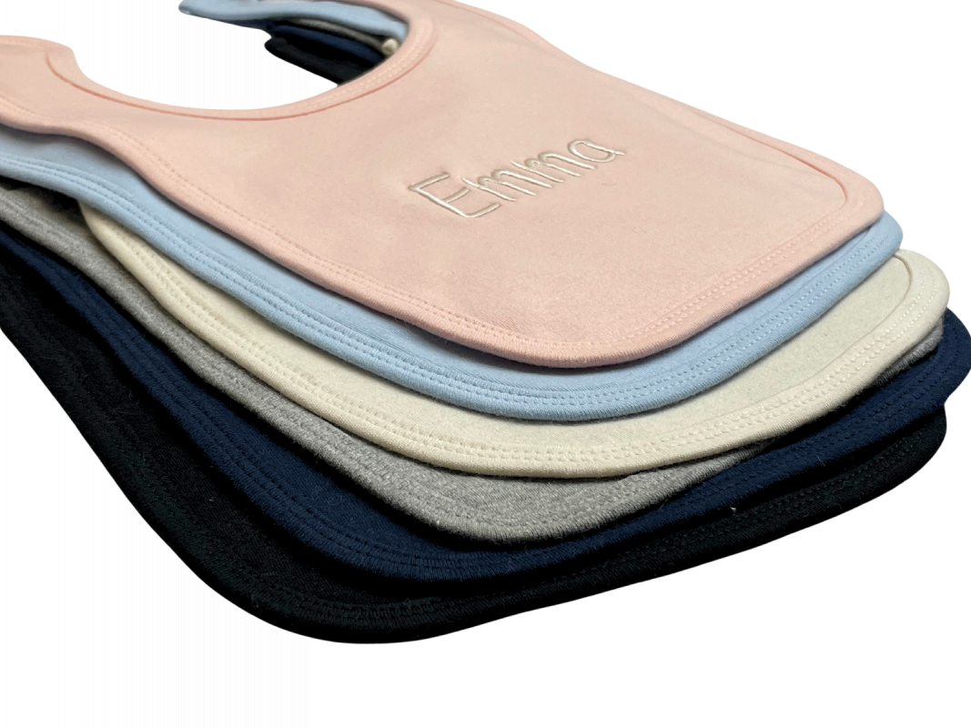 Du hast die Wahl aus über 15 verschiedenen Stickfarben zu entscheiden. Kombiniere deinen persönlichen Babylätzchen mit deiner Wunschfarbe.